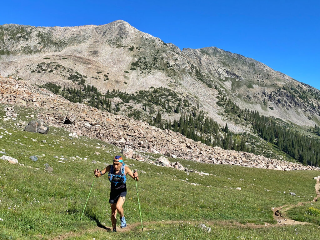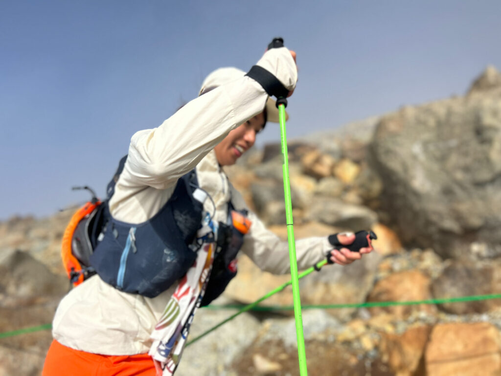 3つ折りで簡単に収納でき、数々のトレイルレースで培ったノウハウを注ぎ込み、軽さにこだわった最軽量モデルです。振り出しの軽さは、ロングレースのストレスや身体の負担をなくし、重量の軽さはウルトラライトハイクでも重要な要素となります。